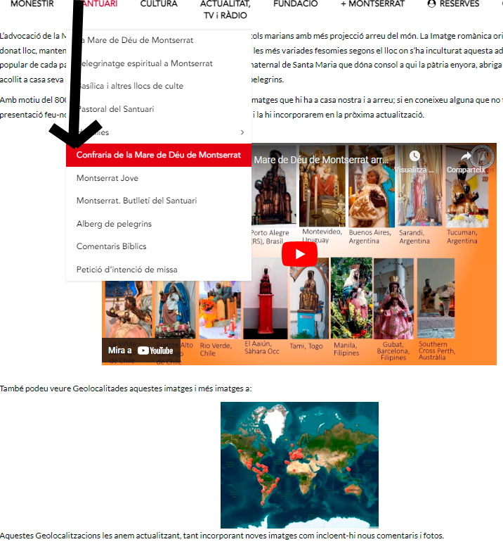 Ens en felicitem mútuament amb un PowerPoint en què a través de les diferents imatges escapades arreu del món, podem veure el treball de la Confraria al llarg d’aquests vuit-sents anys. En l’enllaç que us adjuntem també hi podreu veure un mapa mundi amb la geolocalització de les diferents imatges de la Moreneta.